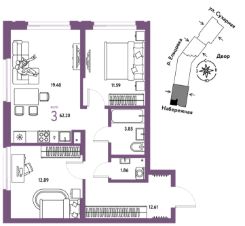 Продается 3комнатная квартира на 2 этаже от застройщика Страна Девелопмент. Площадь квартиры 62,2 кв. м.