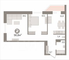 Двухкомнатная квартира площадью 56,8 кв.м.