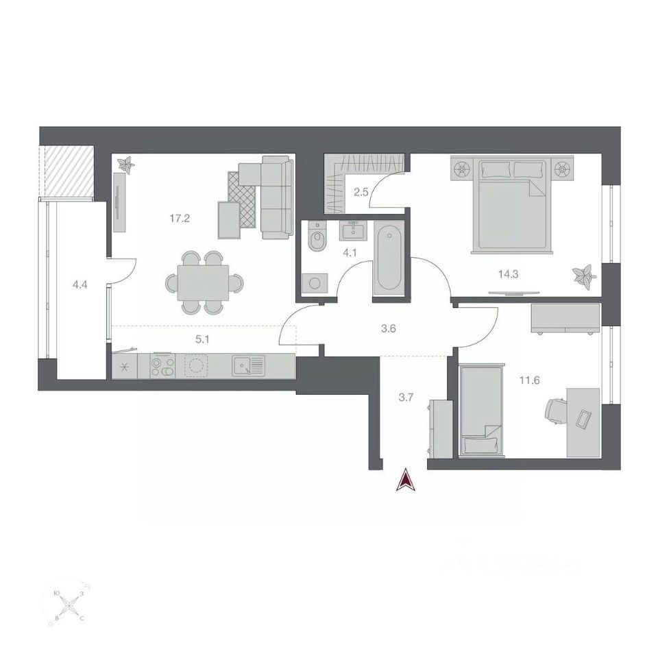 Продаётся 3-комнатная квартира в строящемся доме (БС 1,2,3,4 - 3 этап), срок сдачи: IV-кв. 2028, общей площадью 66.5 кв.м., на 3 этаже. Квартал открытий Беринг", с любовью созданный группой компаний Новый мир", состоит из четырех зданий переменной этажности и расположен на первой береговой линии реки Обь в старом центре Новосибирска.