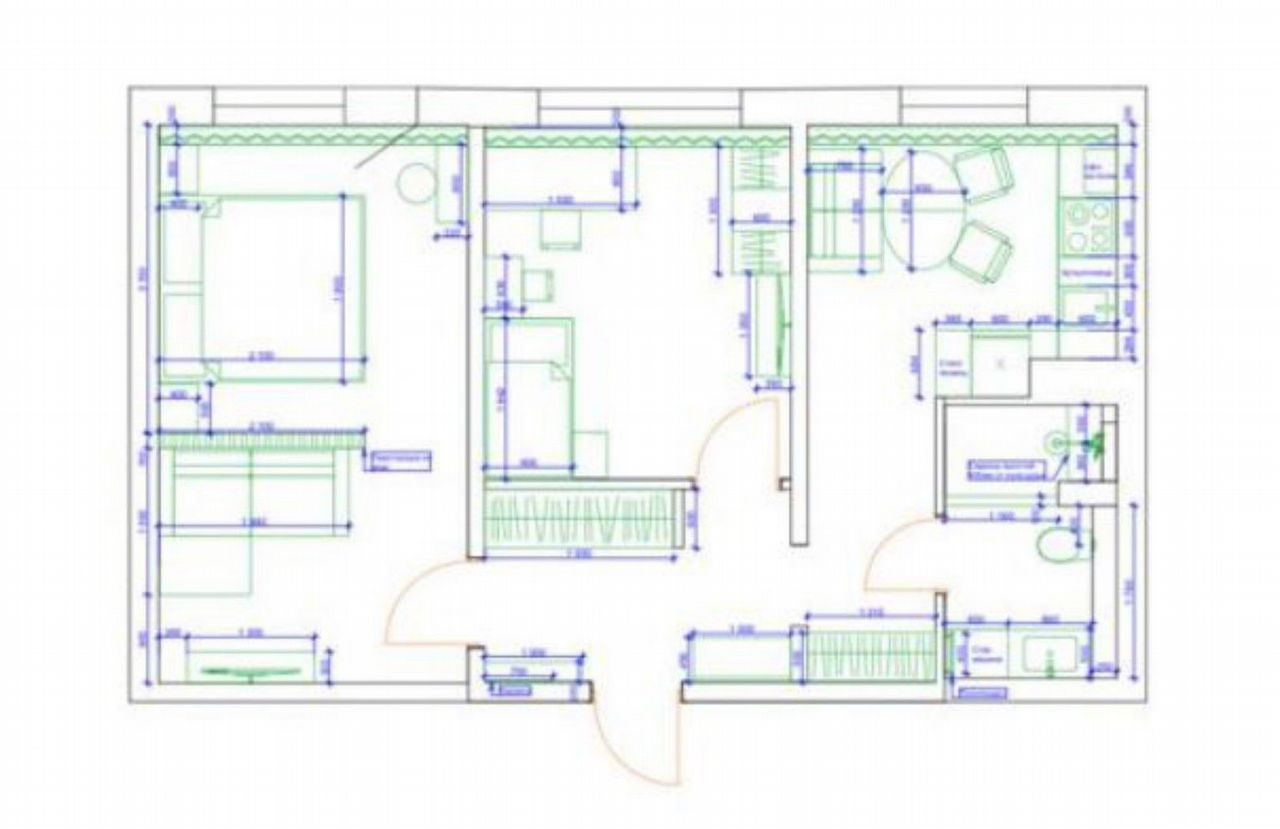 - Спальня: диван, стол, шкаф, комод.