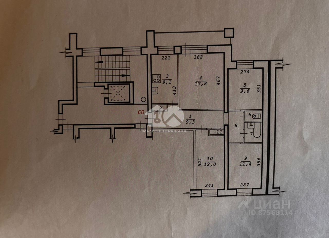Квартира расположена на 6 этаже 10-этажного кирпичного дома 12000 года постройки. Высота потолков — 2,7 м. Жилая площадь составляет 50 кв. м, а площадь кухни —9кв. м. Комнаты просторные и светлые, их площадь — 17 кв. м,12 кв. м, 11 кв. м и 10 кв. м. В квартире есть лоджия, где можно устроить уютное место для отдыха.