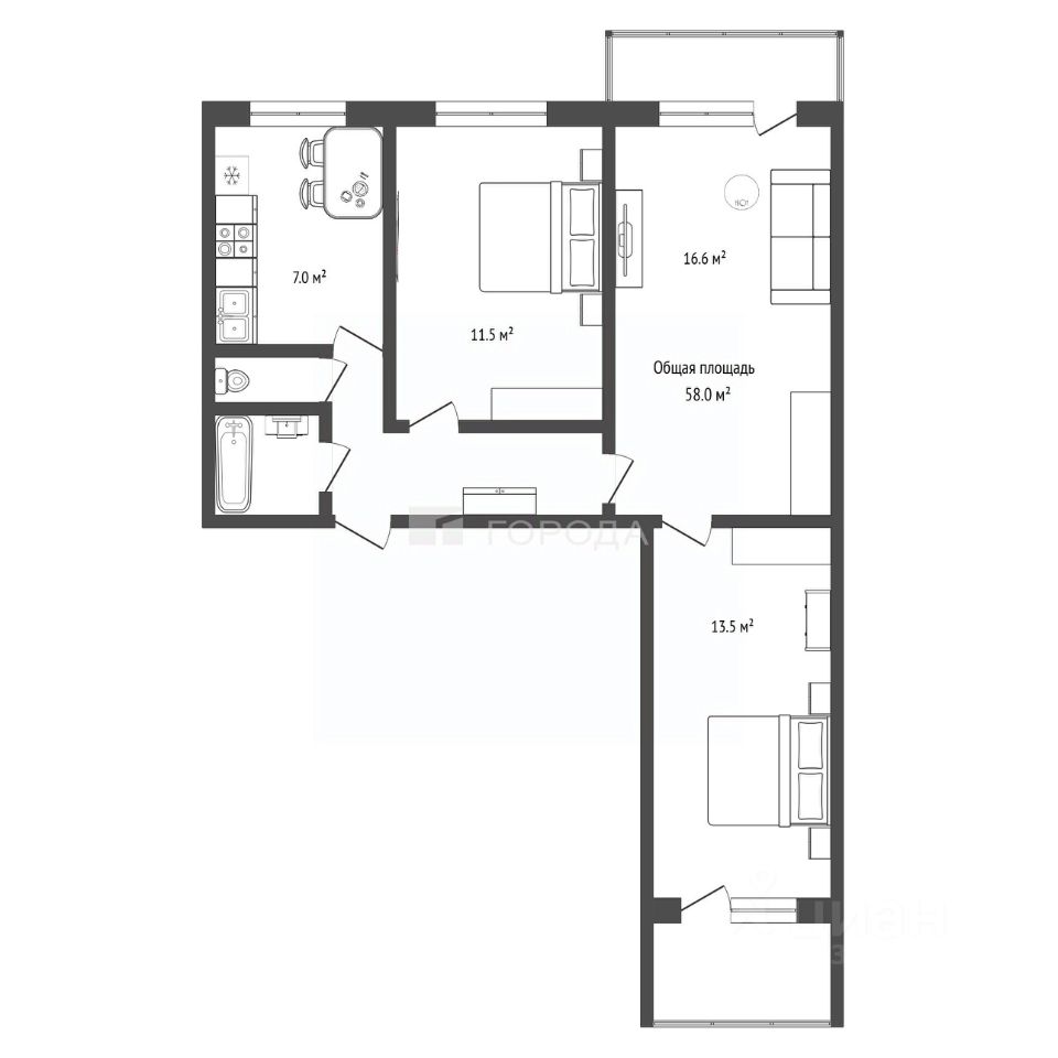 58 м²