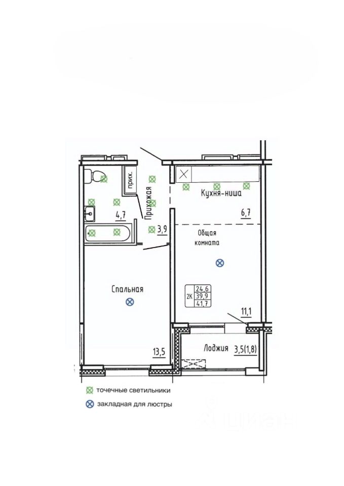 Общая площадь41,7 м²