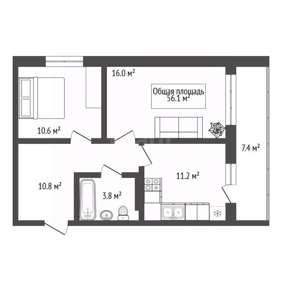Функциональная планировка с просторной лоджией.