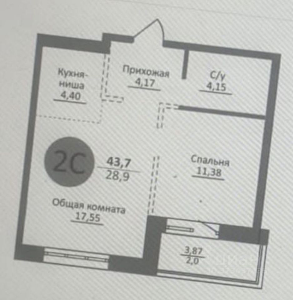 43,7 м²