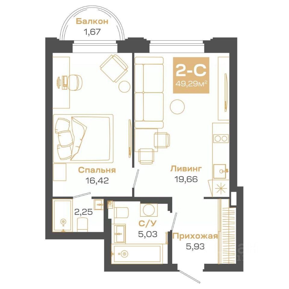 Общая площадь49,29 м²
