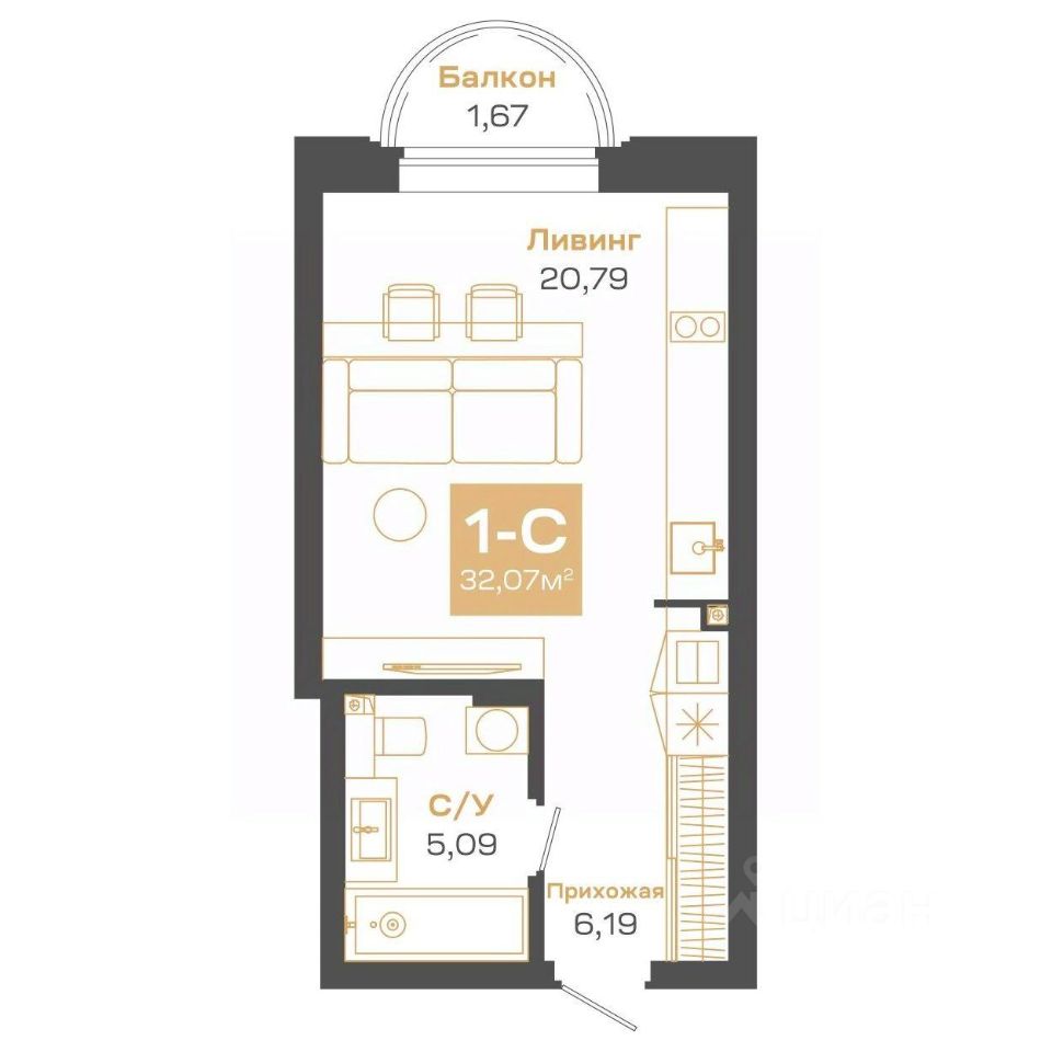 Общая площадь32,07 м²
