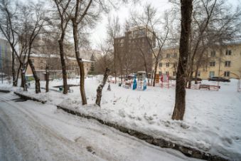 Окна выходят на солнечную сторону в зелёный двор с клумбами, песочницами и скамьями для отдыха.