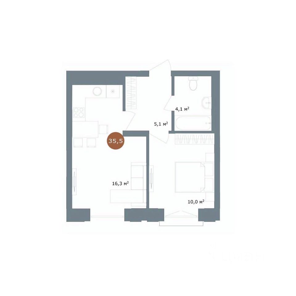 Общая площадь35,5 м²