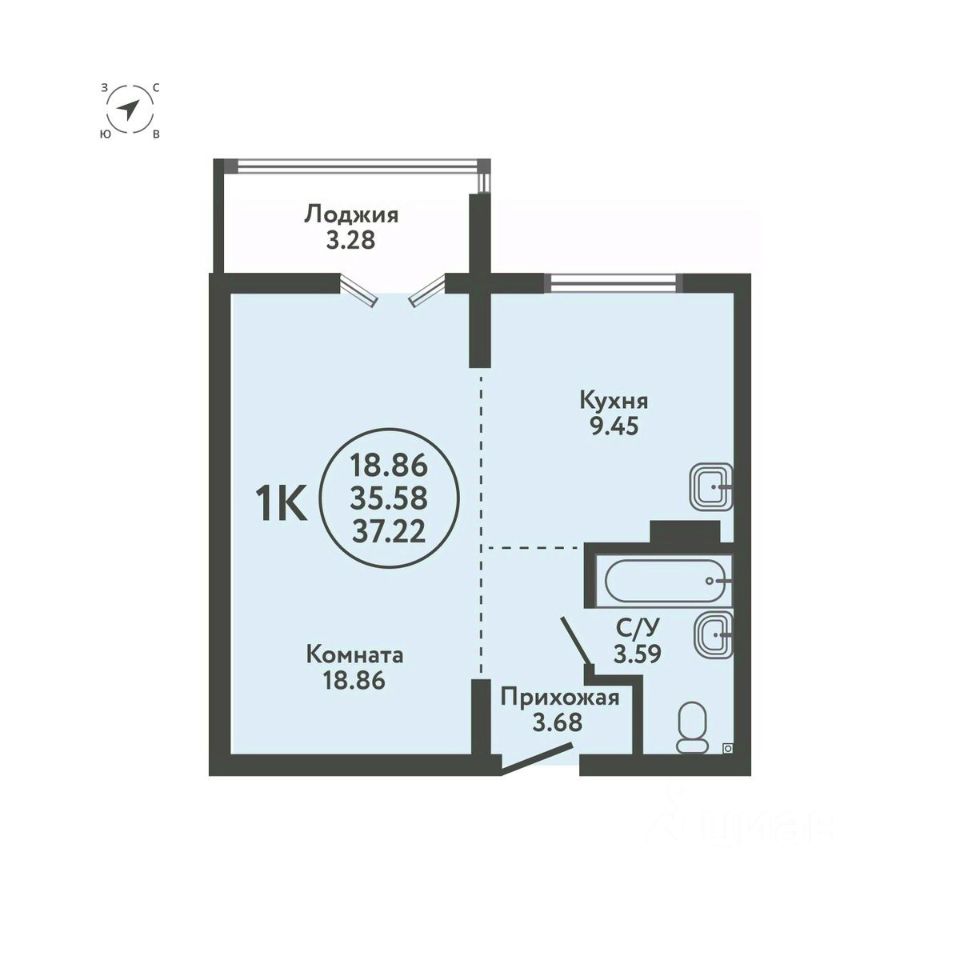 Общая площадь37,22 м²
