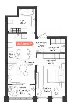 Общая площадь50,96 м²