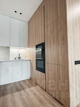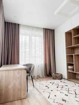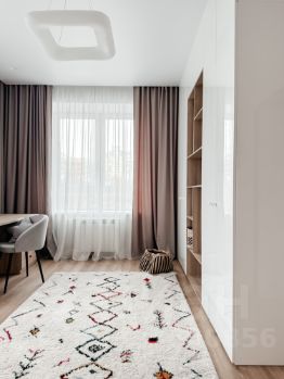 Кухня полностью укомплектована техникой BOSH, столешница из натурального камня. Шторы на электрокарнизах, двери со скрытым коробом, продуманная система освящения.
