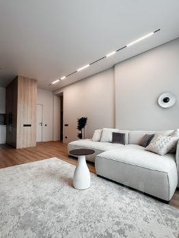 Дизайнерский интерьер, вся мебель новая, сделана под заказ из дорогих материалов, итальянская мягкая мебель. В квартире никто не жил!