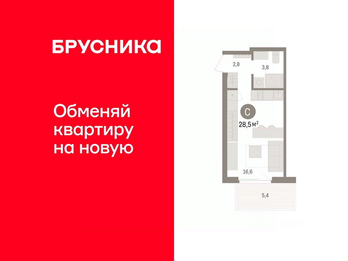 Продается 1-комн. студия от застройщика с предчистовой отделкой в ЖК "Пшеница" на 7 этаже. Общая площадь: 28.52 кв.м., площадь гостиной 16.6 кв.м., из которых 5 кв.м. выделено под кухонную зону. Все окна выходят на одну сторону. В квартире один балкон, один совмещенный санузел. Высота потолков 2.82 м.