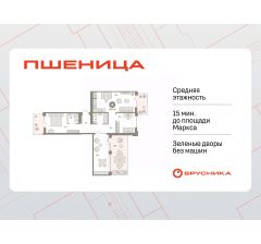 Продается 2-комн. квартира с предчистовой отделкой в ЖК "Пшеница" на 7 этаже. Общая площадь: 112.99 кв.м. Высота потолков 2.7 м.