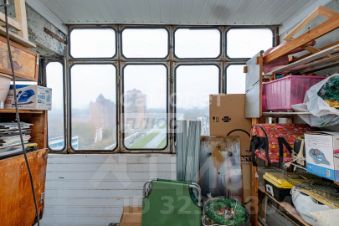 Из этой комнаты есть выход на лоджию, которая переходит в протяженный балкон, хоть на роликах катайся. С балкона открывается прекрасный вид на восходящее утреннее солнце и город без промзон и частного сектора. В комнатах потолок натяжной, на полу линолеум.