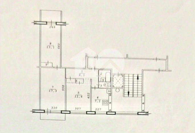 Квартира расположена на втором этаже девятиэтажного панельного дома 1977 года постройки. Общая площадь составляет 60,8 кв. м, из которых 42 кв. м — жилая площадь. Высота потолков — 2,7 м, что создаёт ощущение простора и свободы.