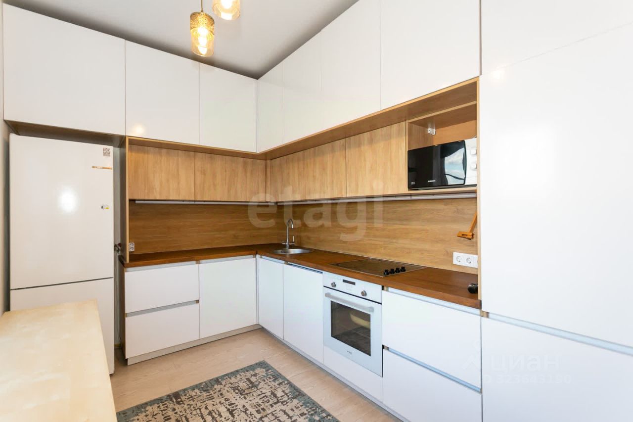 В стоимость включена мебель и техника: кухонный гарнитур с варочной панелью, духовым шкафом и посудомоечной машиной, шкаф в прихожей, водонагреватель, стиральная машина и кровать в спальне.