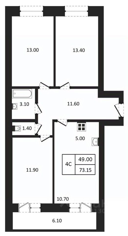 Общая площадь73,15 м²