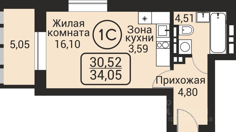 30,52 м²