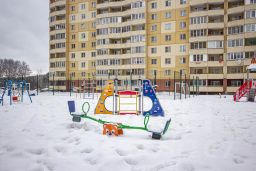 Во дворе дома имеется игровая площадка, спортивные тренажеры, футбольное поле.