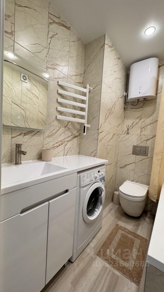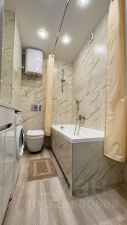 Современная отделка: керамогранит, акриловая ванна, инсталляция, встроенные смесители, водонагреватель.