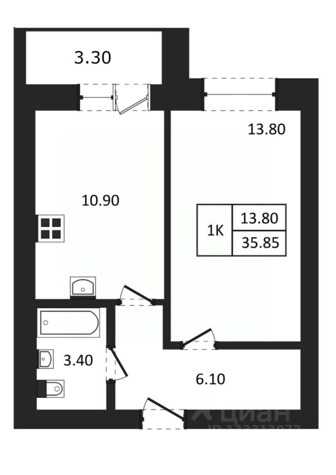 Общая площадь35,85 м²
