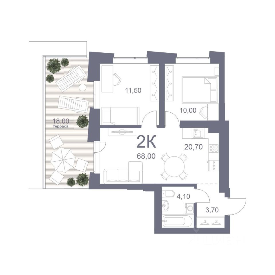 Общая площадь68 м²