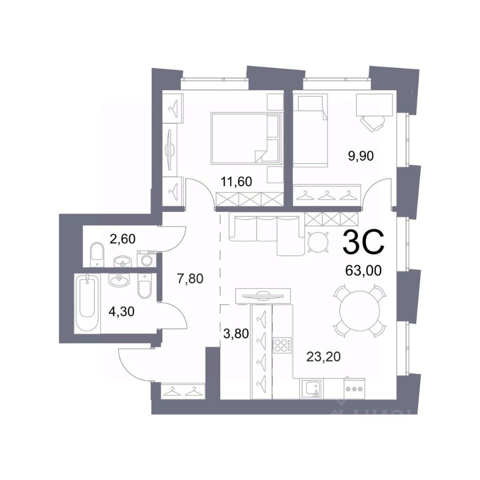 Общая площадь63 м²