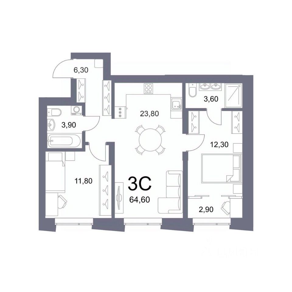 Общая площадь64,6 м²