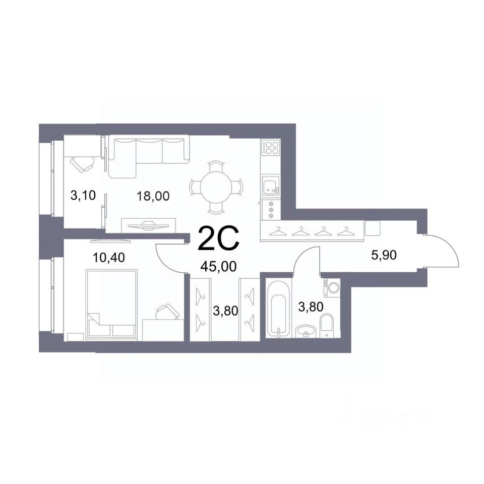 Общая площадь45 м²