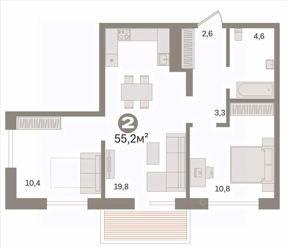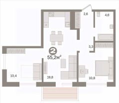 Квартира с кухней-гостиной и двумя спальнями в жилом районе "Пшеница".
