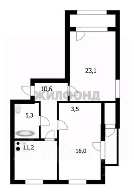 составляет 69,9 кв.м., жилая площадь квартиры 42,6 кв.м., кухня 11,2 кв.м.