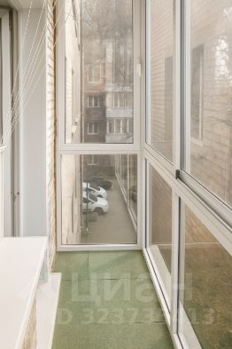 Классный панорамный балкон - с видом на деревья, вид вообще отдельный плюс этой квартиры - в центре города, но на зеленую зону.