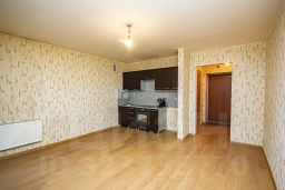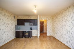 Квартира расположена на 6 этаже 17-этажного кирпичного дома, построенного в 2012 году. Общая площадь - 32,6 м.кв., жилая - 20 м.кв., санузел - 4 м.кв.. В квартире большая комната правильной квадратной формы, удобной для расстановки мебели, с нишей под куханый гарнитур, с большим панорамным окном в пол, выходящим на южную сторону, что делает квартиру очень светлой и позволяет любоваться видами на зеленый район. Отопление горизонтальное, в квартире очень тепло. На полу водостойкий качественный ламинат. Стены ровные. Обои можно поменять на свой вкус, потолок натянуть либо вытянуть. Лоджия большая, площадью 5 м.кв., застекленная, можно организовать под уголок отдыха. Просторный совмещенный санузел: на стенах и полу свежая кафельная плитка. В коридоре достаточно места для прихожей, можно разместить встроенный шкаф.