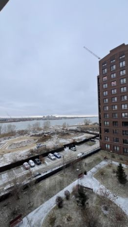 2) Окна выходят во двор, вид из кухни-гостиной на реку