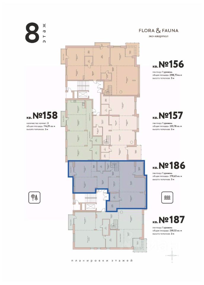 В продаже 5 квартира 186 в эко-квартале. Flora&Fauna - эко-квартал премиум-класса в Заельцовском бору на берегу Оби в 15 минутах от площади Калинина. Пространство для комфортной жизни в единстве с природой.