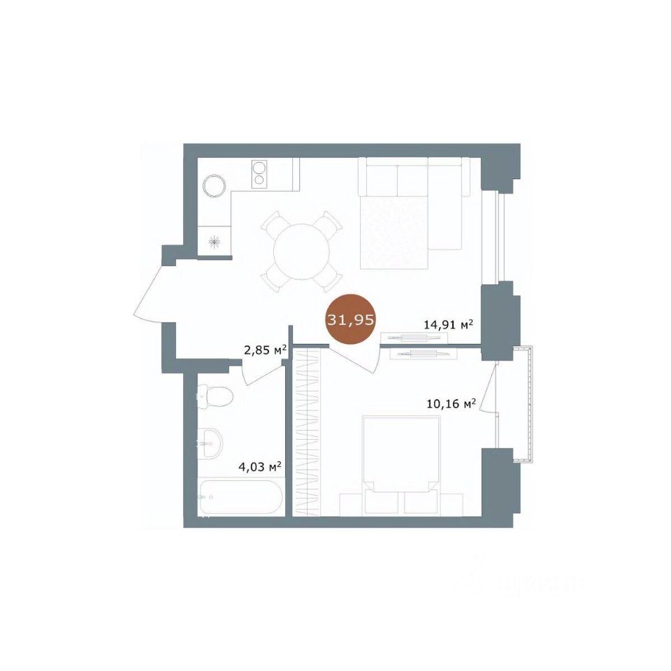 Общая площадь31,95 м²