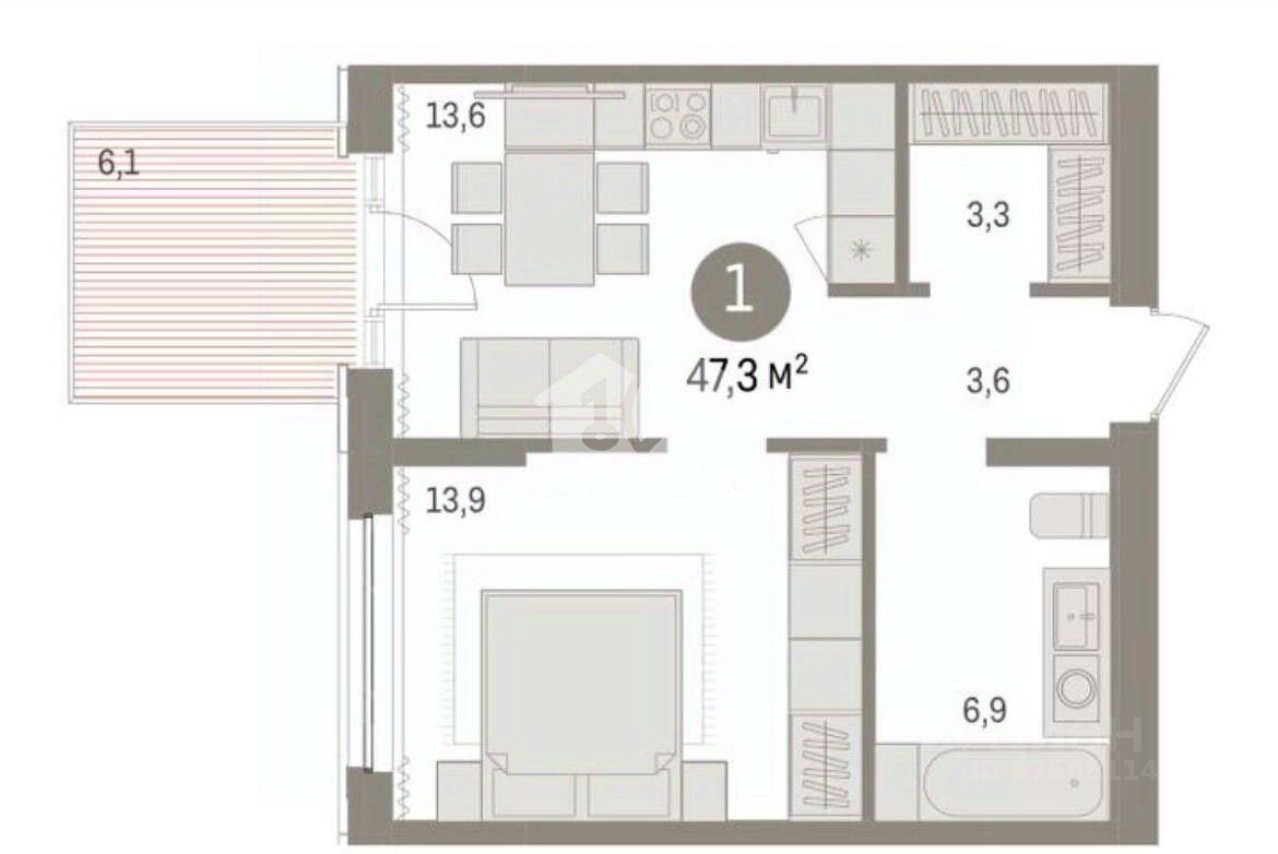 13,6 м²