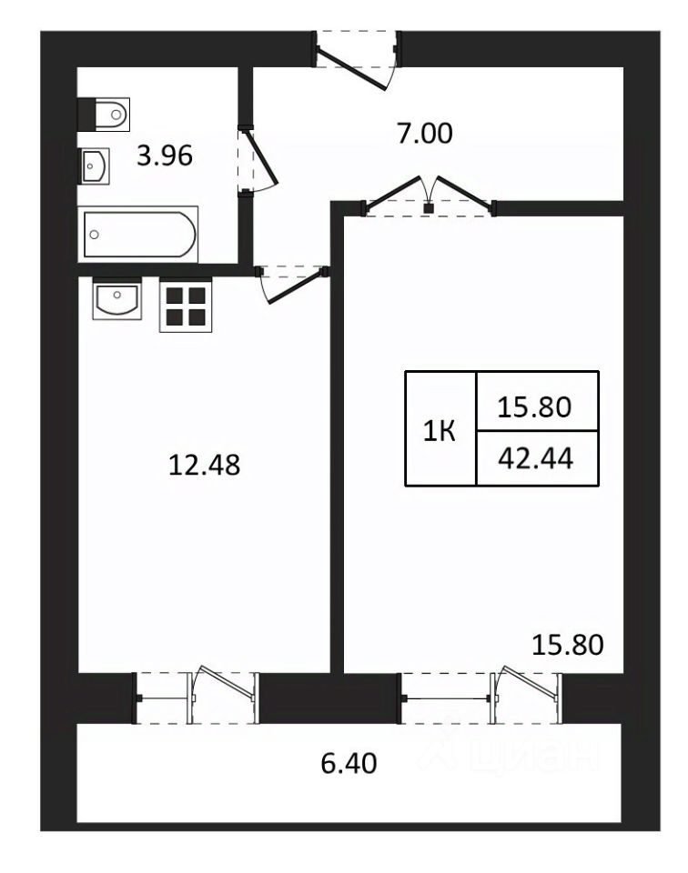 Общая площадь42,44 м²