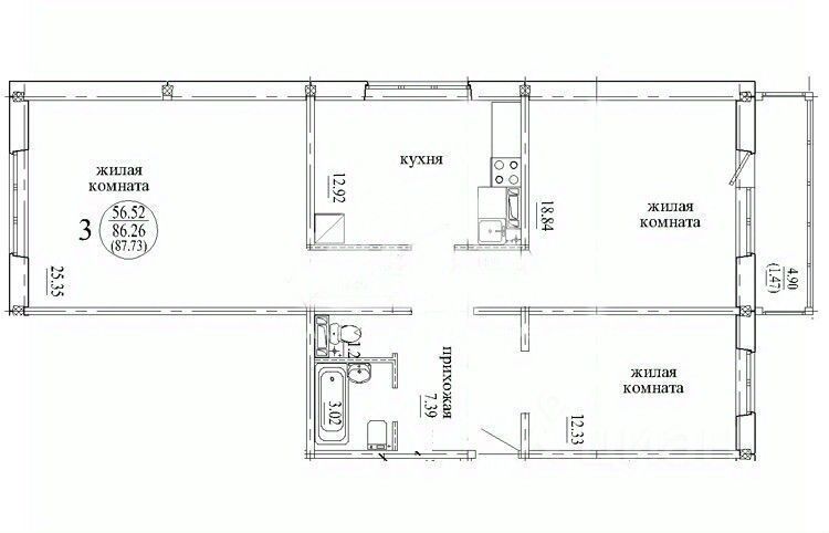 Общая площадь квартиры составляет 87 кв. м, из которых 56,5 кв. м — жилая площадь, а 13 кв. м — кухня. В квартире сделан евроремонт, что позволит новым владельцам сразу заселиться и наслаждаться комфортом без дополнительных вложений. Изолированные комнаты и балкон создают дополнительные удобства и пространство для отдыха.
