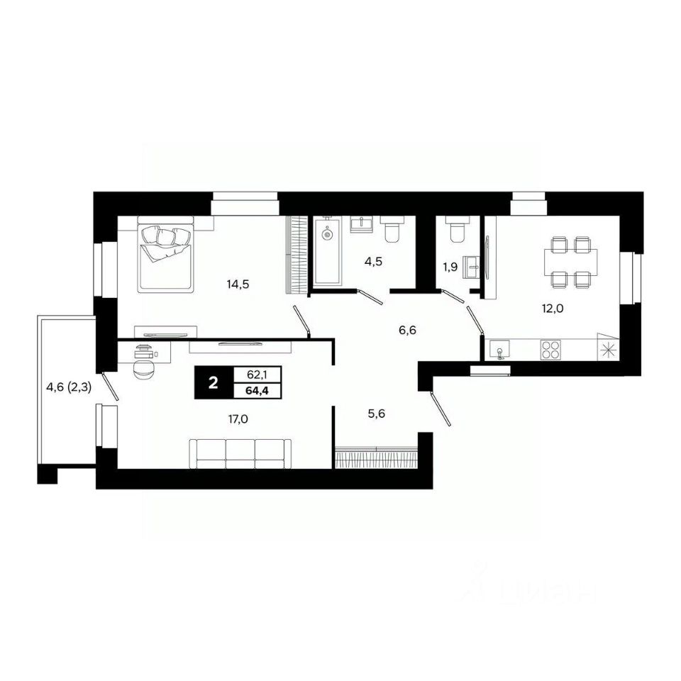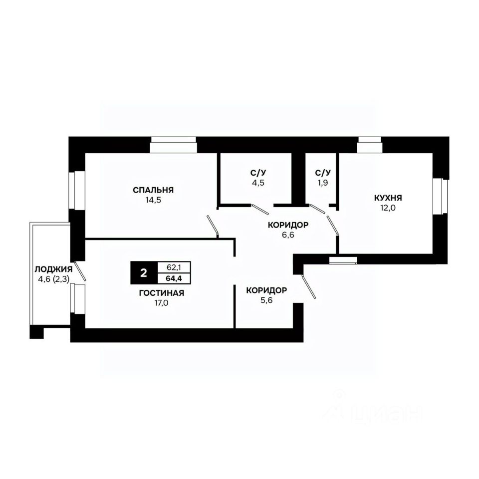 Общая площадь64,4 м²