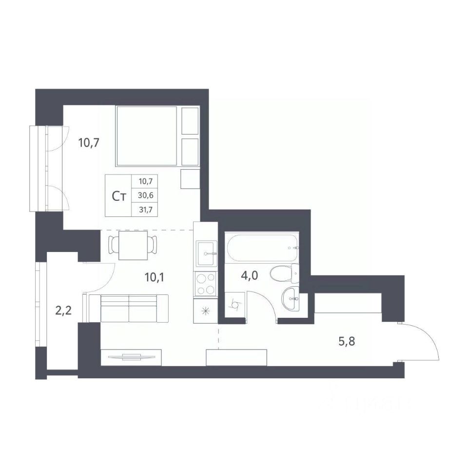 Продается 1-комн. студия с отделкой White box. Квартира расположена на 5 этаже 25 этажного монолитно-кирпичного дома в клубном комплексе "Новаторы" от группы компаний "Поляков".