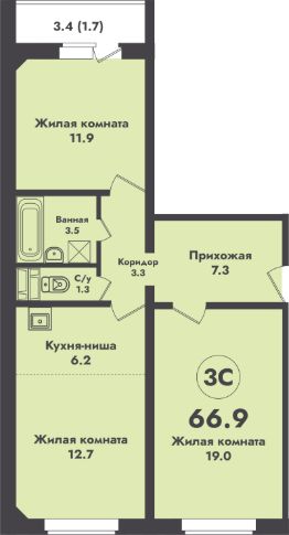 66,9 м²