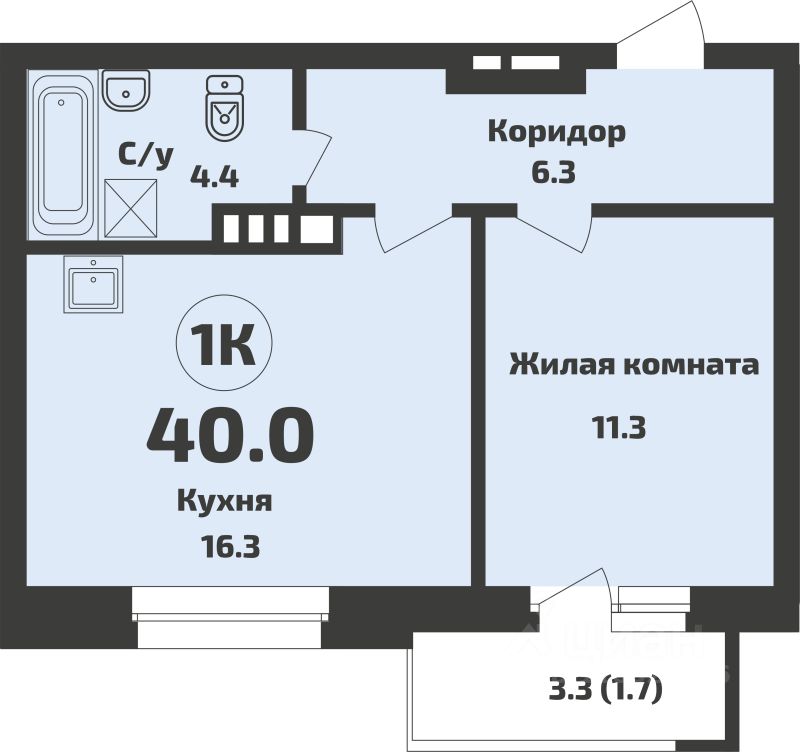 Общая площадь40 м²