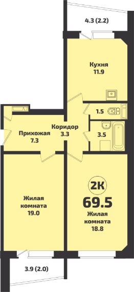 Общая площадь69,5 м²