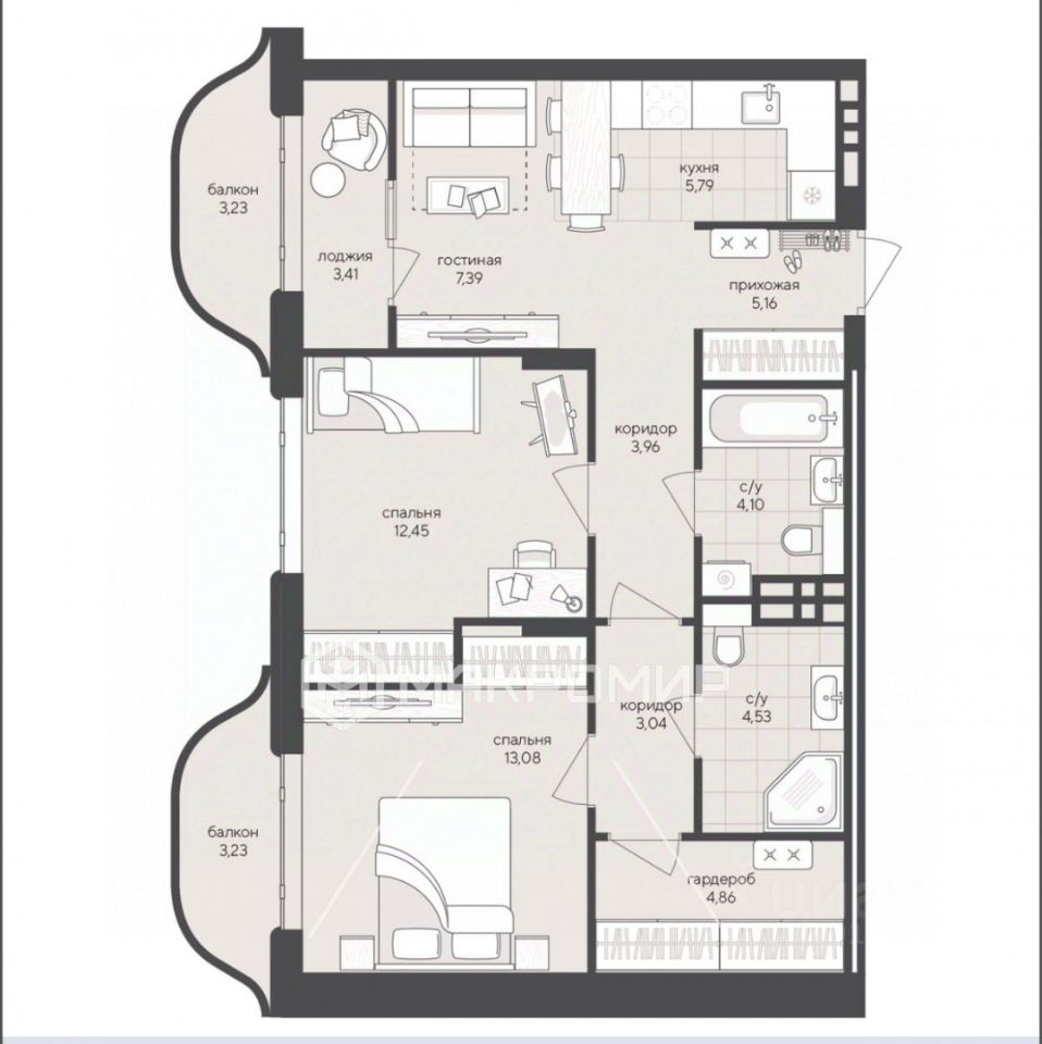 •Пол: стяжка с шумоизоляцией;