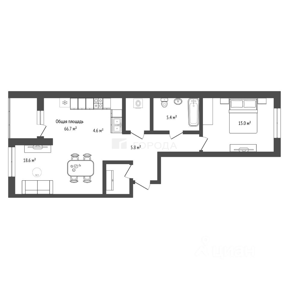 Общая площадь: 66,7 м²