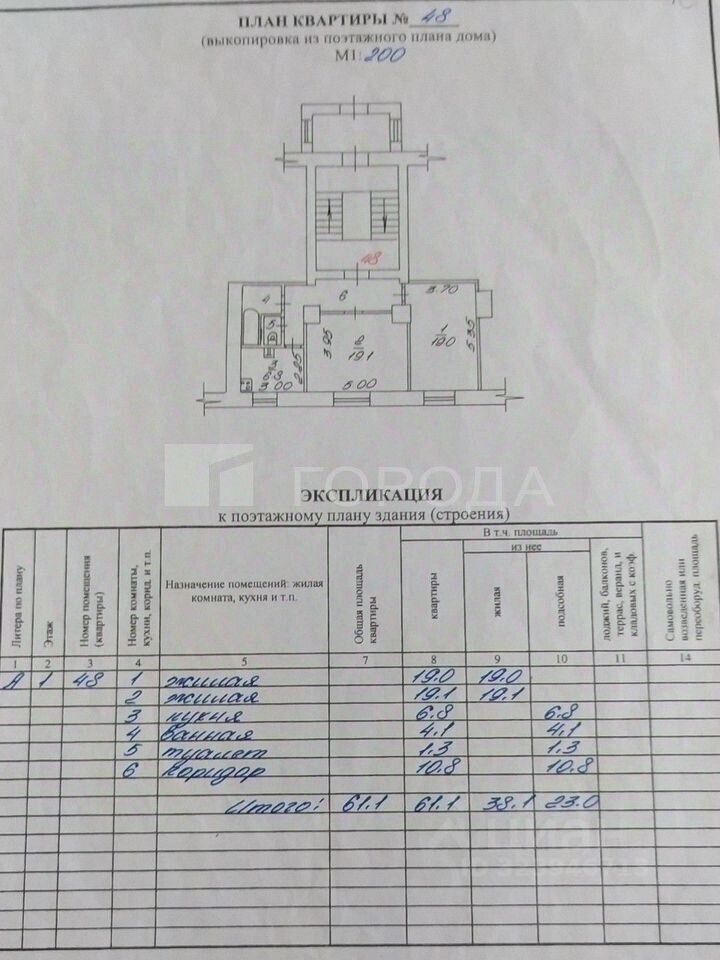 Квартира находится на первом этаже шестиэтажного кирпичного дома, построенного в 1945 году. Общая площадь составляет 61,1 кв. м, из которых 38 кв. м — жилая площадь, а 6 кв. м — кухня. Окна выходят на улицу, комнаты изолированы, что обеспечивает комфорт и уединение.