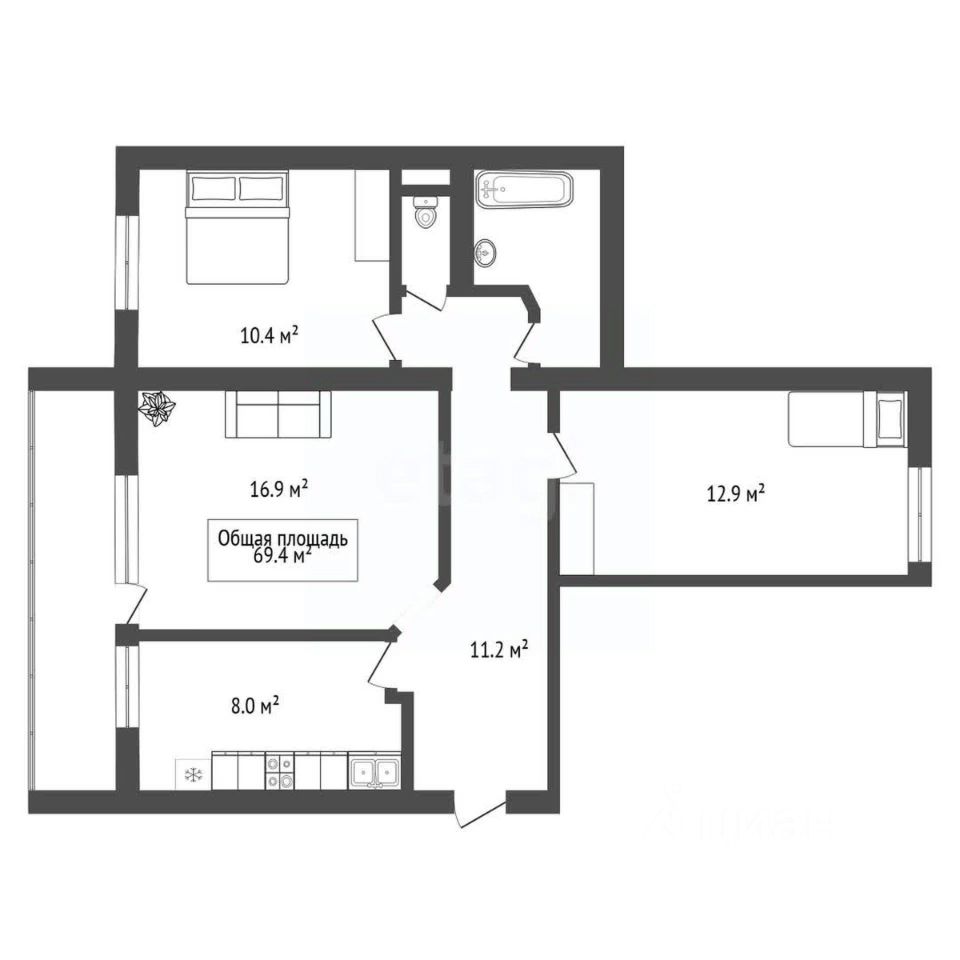 В квартире остается все, что видите на фотографиях (кухонный гарнитур с техникой, холодильник и шкафы-купе в коридоре и комнате).